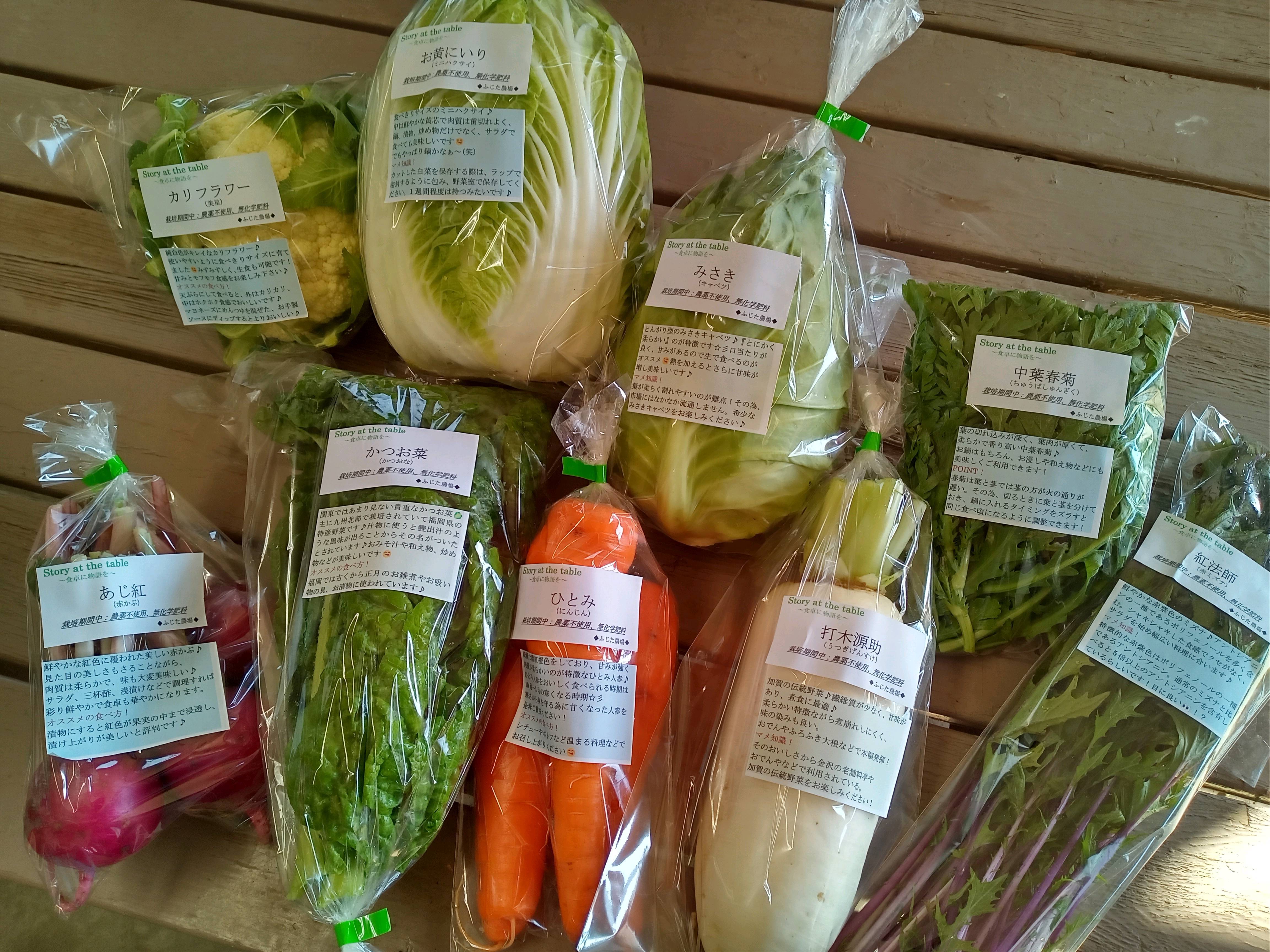 そんな今採れている宝物を皆さんに食べて頂きたく、『今採れるもの✕宝物』に掛けて、季節の野菜セット『採れTakara☆彡』をお送りさせて頂きます。