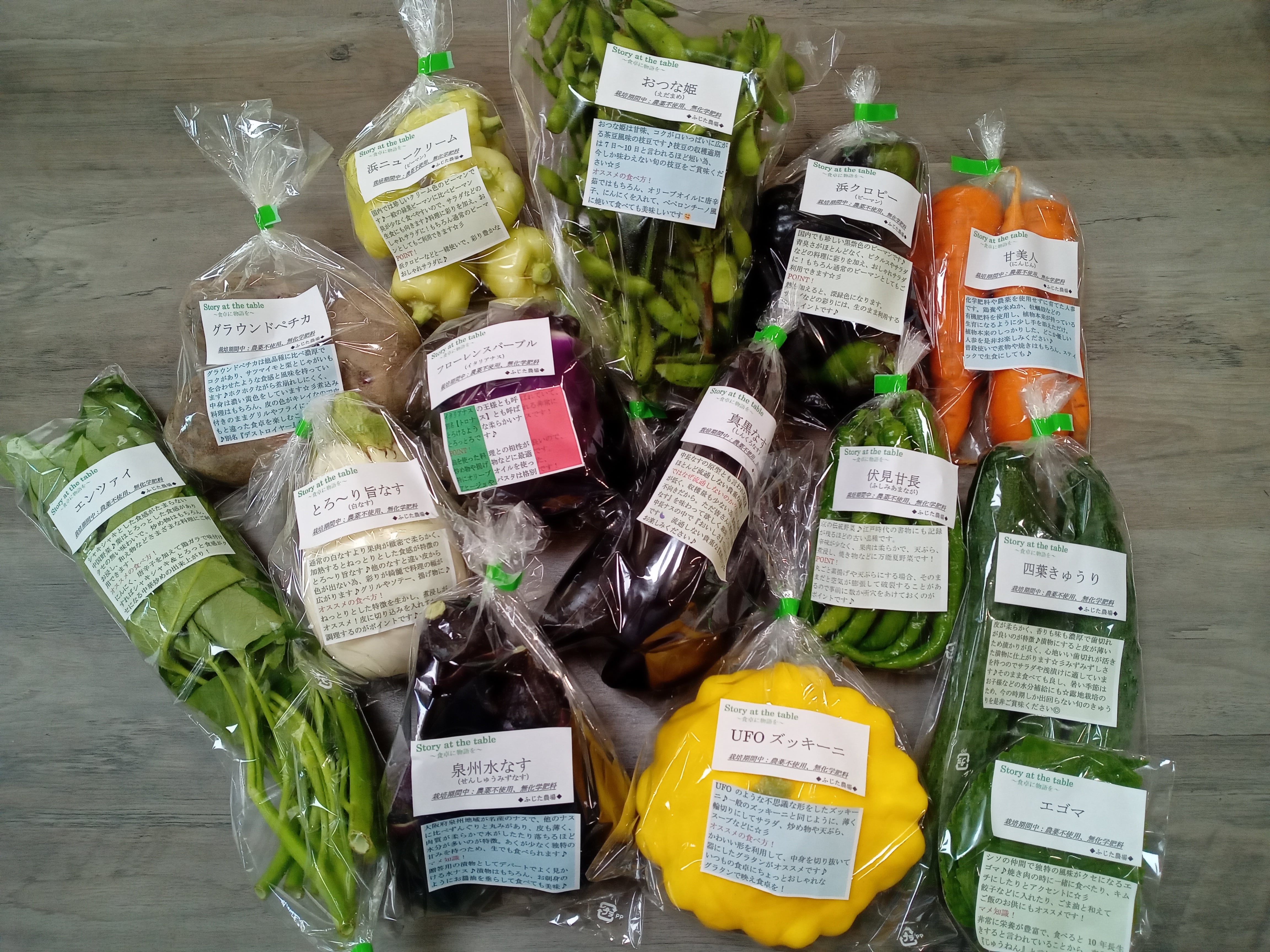 そんな今採れている宝物を皆さんに食べて頂きたく、『今採れるもの✕宝物』に掛けて、季節の野菜セット『採れTakara☆彡』をお送りさせて頂きます。
